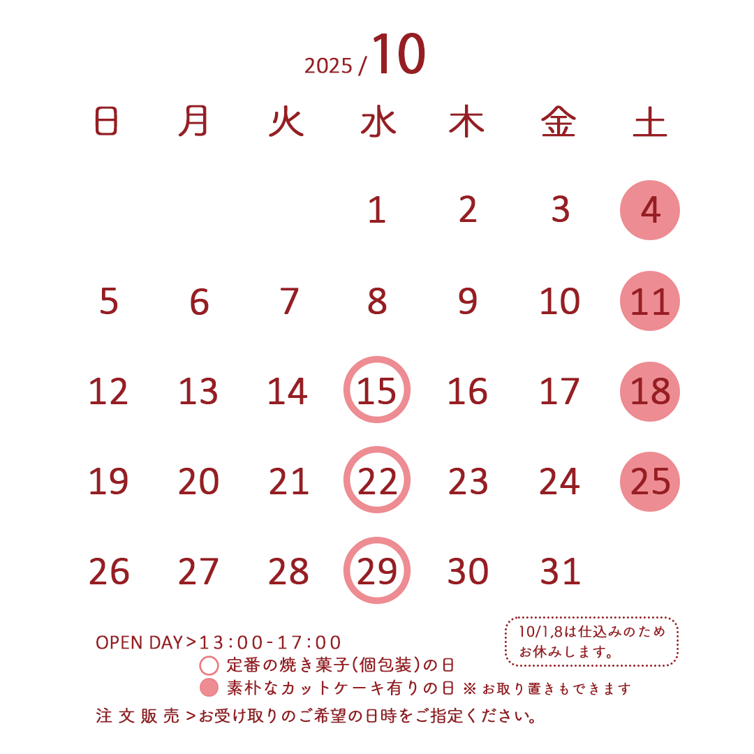 10/1㈬と10/8㈬は仕込みのため、オープンデーをお休みします。